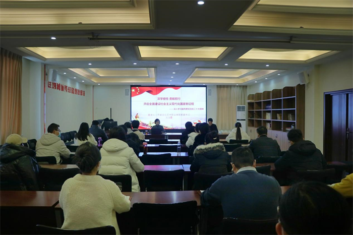 王云彪强调,学习宣传贯彻党的二十大精神是学校当前和今后一个时期的首要政治任务。广大师生要充分认识党的二十大的重大意义,完整、准确、全面领会党的二十大精神,做到真学、真懂、真信、真实践,在全面学习、全面把握、全面落实上狠下功夫,推动党的二十大精神在我校落实落地。要深入落实新时代党的建设总要求,进一步加强组织领导,强化学习培训、宣传宣讲、理论阐释,切实把思想和行动统一到党的二十大精神上来,把学习成果转化为推动学校内涵式高质量发展的实践成果。