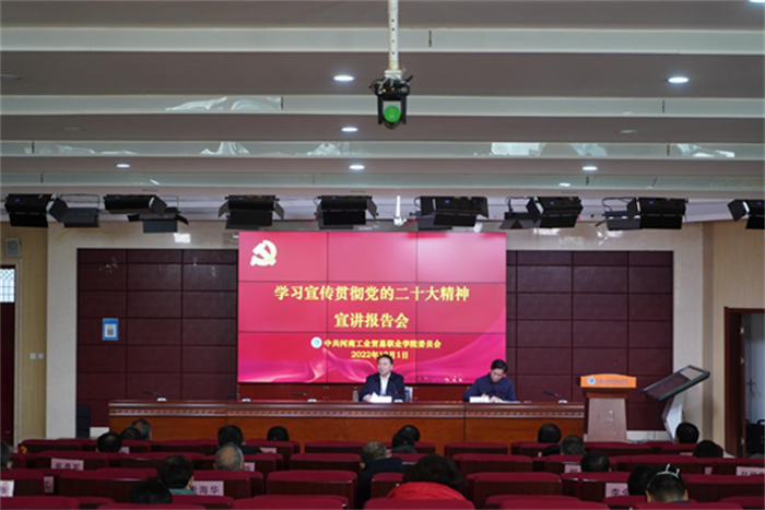 为进一步掀起学习宣传贯彻落实党的二十大精神热潮,12月1日,河南工业贸易职业学院召开学习宣传贯彻党的二十大精神宣讲报告会,党委书记刘合行宣讲党的二十大精神。全校教职工以“线上+线下”相结合的方式参加会议。