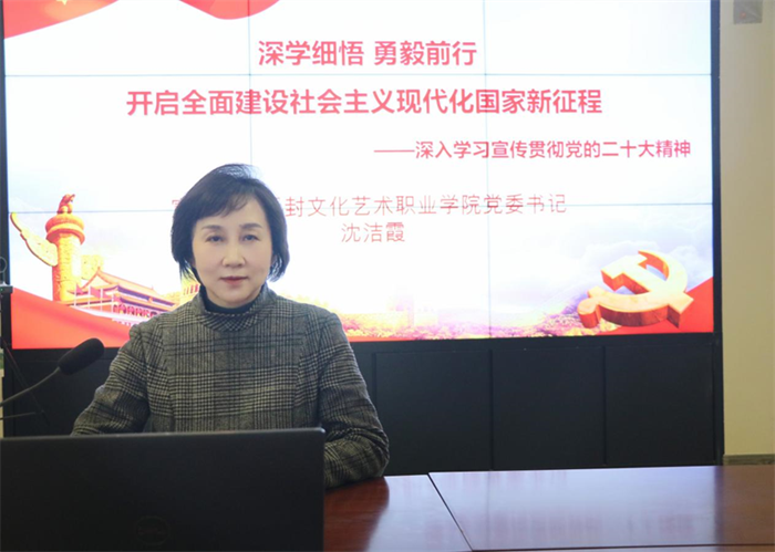 为深入学习宣传贯彻党的二十大精神,11月30日,开封文化艺术职业学院党委书记沈洁霞以《深学细悟 勇毅前行 开启全面建设社会主义现代化国家新征程》为题作专题报告,宣讲党的二十大精神。