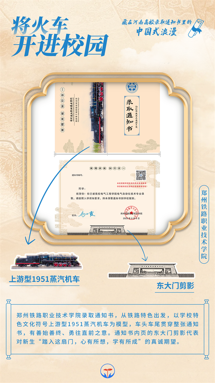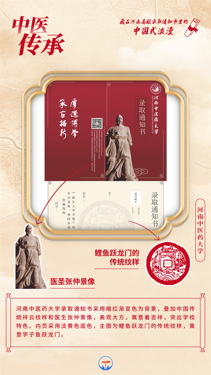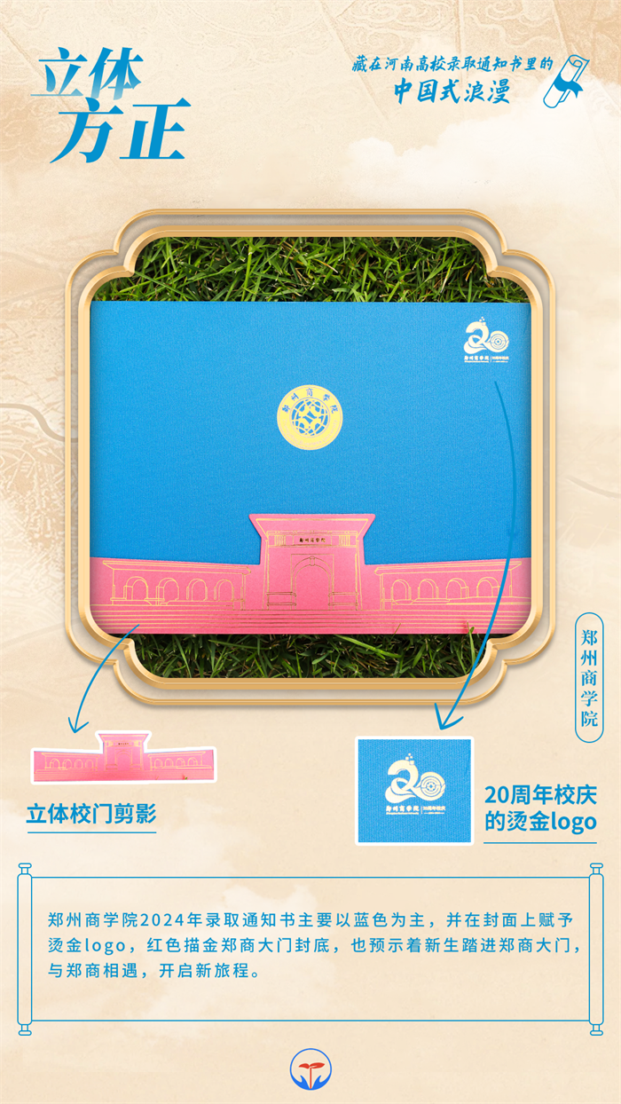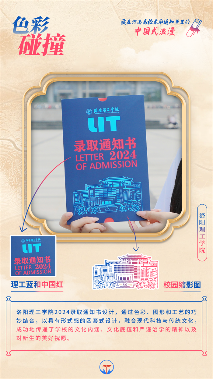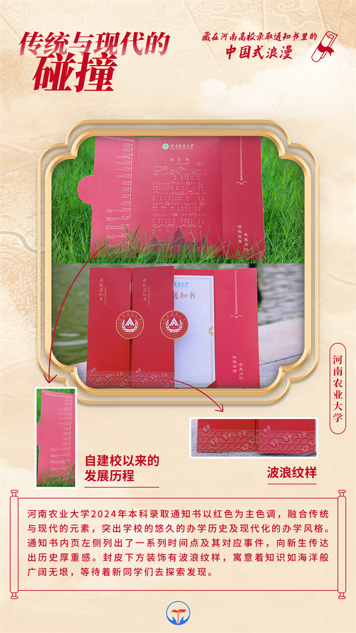 近日,我省各高校录取通知书陆续亮相。有的一纸三叠,徐徐展开,极具中原风韵;有的传统而又现代,典雅大气,寓意深远;有的以太极、铜马为背景,文化底蕴深厚;还有的以科技映传统,融合科技元素与传统文化,展现学校教育理念……一起看藏在河南高校录取通知书里的中国式浪漫。